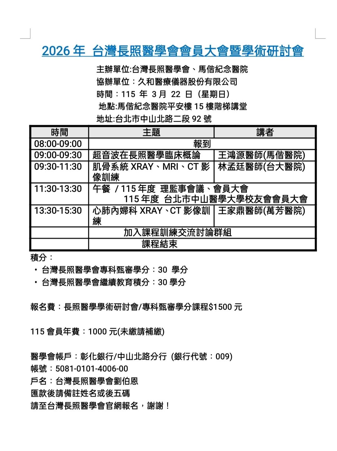 2026年 台灣長照醫學會會員大會暨學術研討會